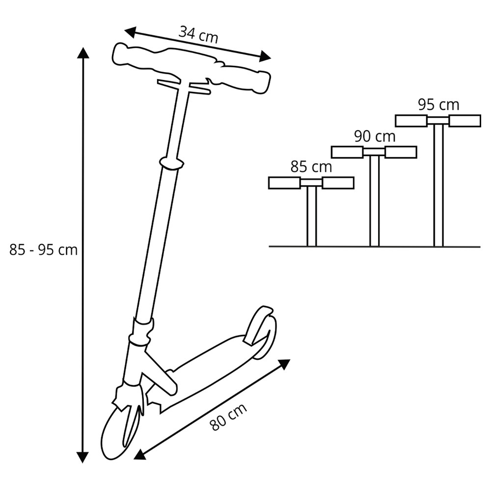 • Verstellbarer Lenker (85-90-95 cm)
