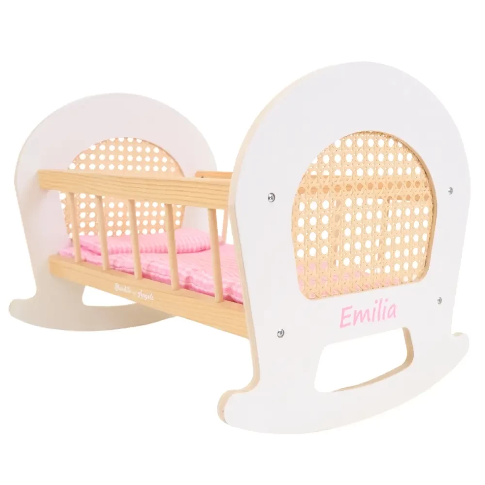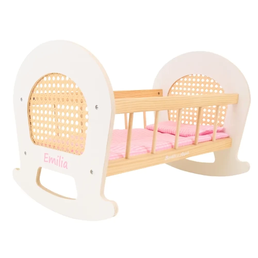 Aufkleber rosa mit Namen Puppenwiege Rattan