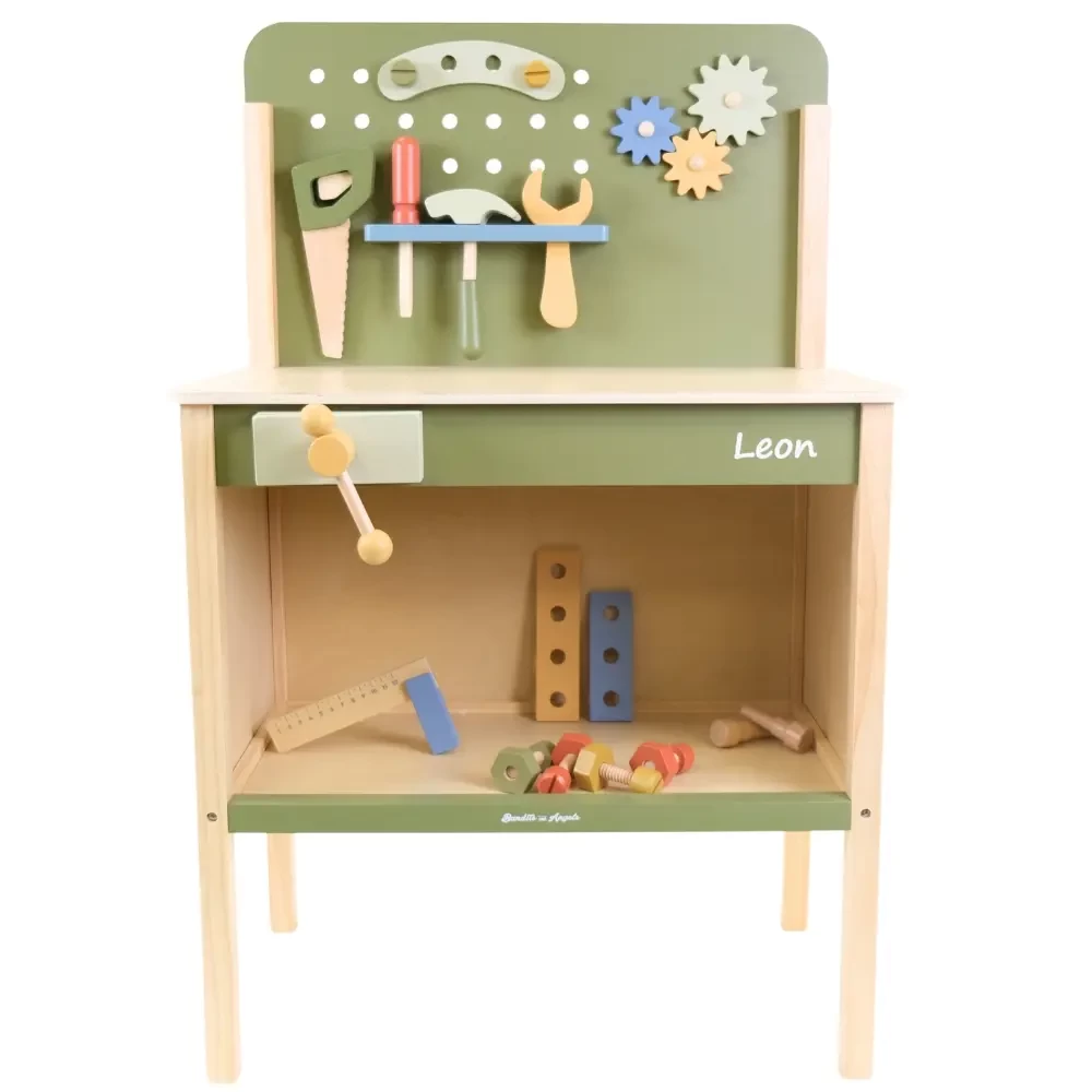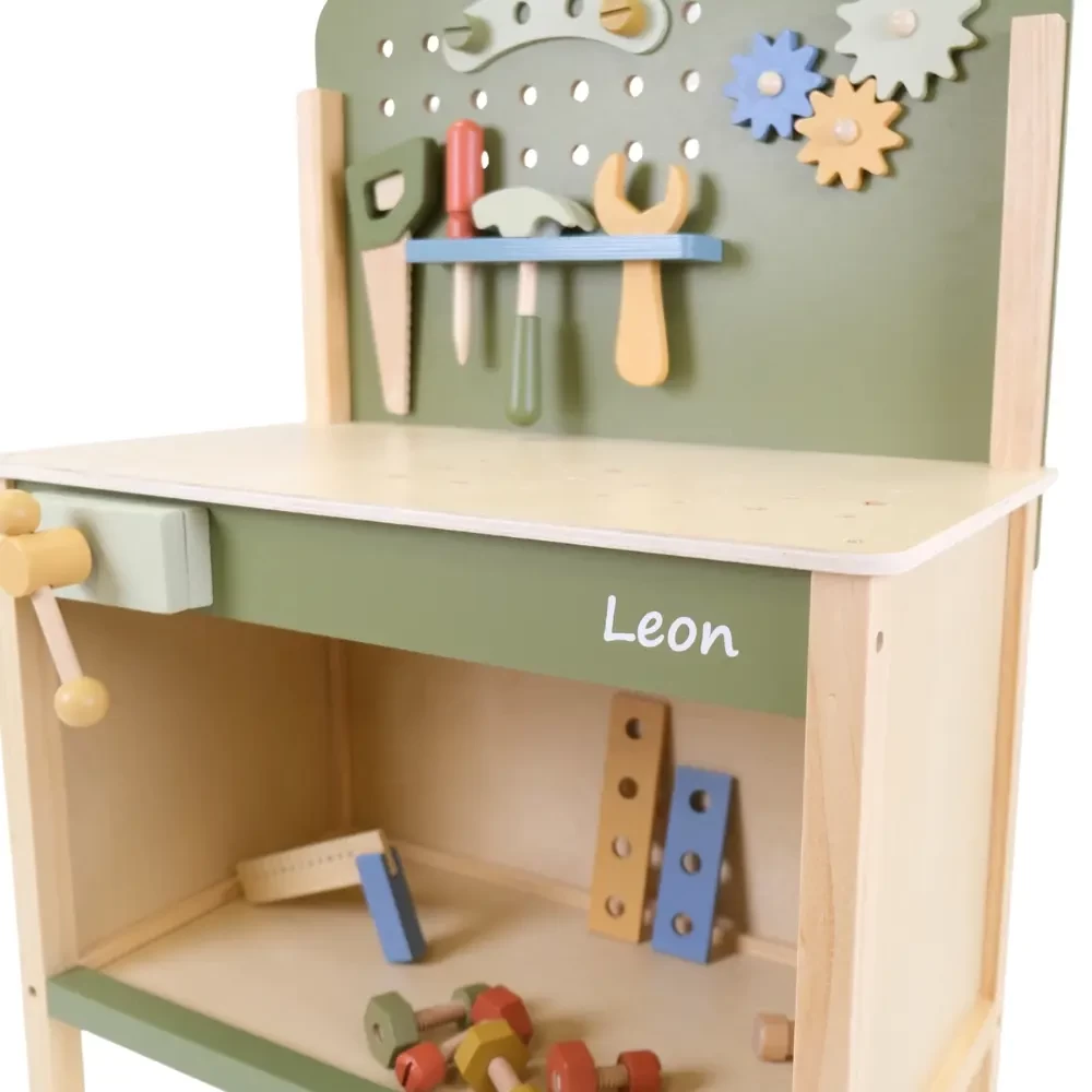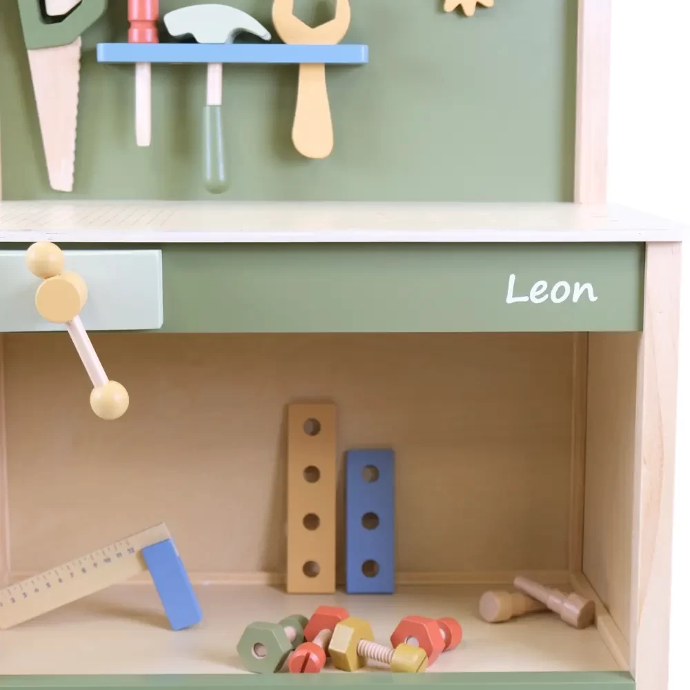 Aufkleber Weiß mit Namen Little Worker Retro Grün